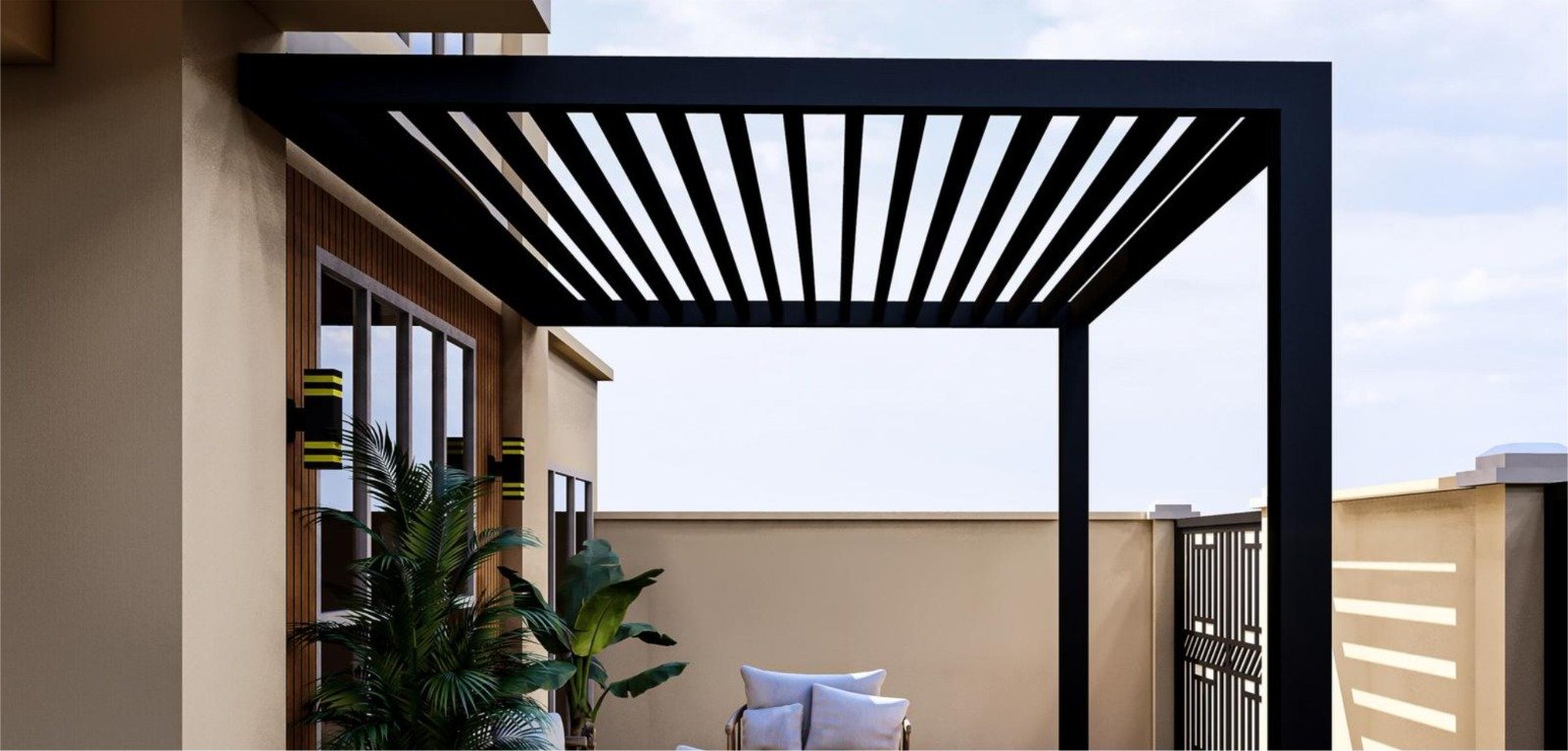 Modern pergolas that transform outdoor areas into elegant, usable spaces. Choose from fabric or louvered designs to control light and airflow seamlessly.